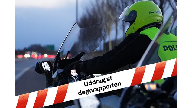 Kl 01.35 – Kalundborgvej, Holbæk: 35-årig mand fra Fyn standset i en personbil og erkendte, at han var påvirket af narko. Desuden kunne politiet konstatere, at manden kørte uden at have førerret.